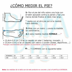 El interior cuenta con forro y plantilla extraíble en piel, lo que permite retirarla fácilmente para comprobar si la talla es la adecuada y ver cuánto margen de crecimiento tiene el pie de la niña. Además, facilita la higiene y ventilación del calzado.