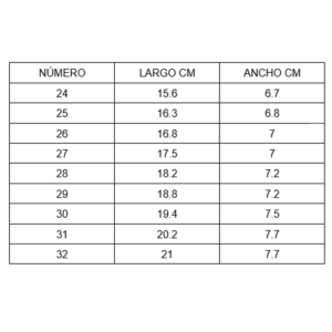 Horma amplia y puntera cuadrada, que permite a los deditos moverse sin restricciones.