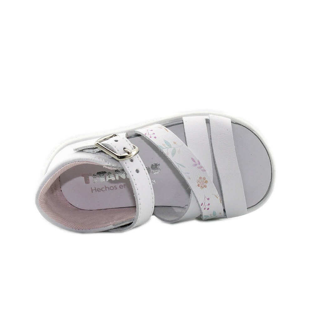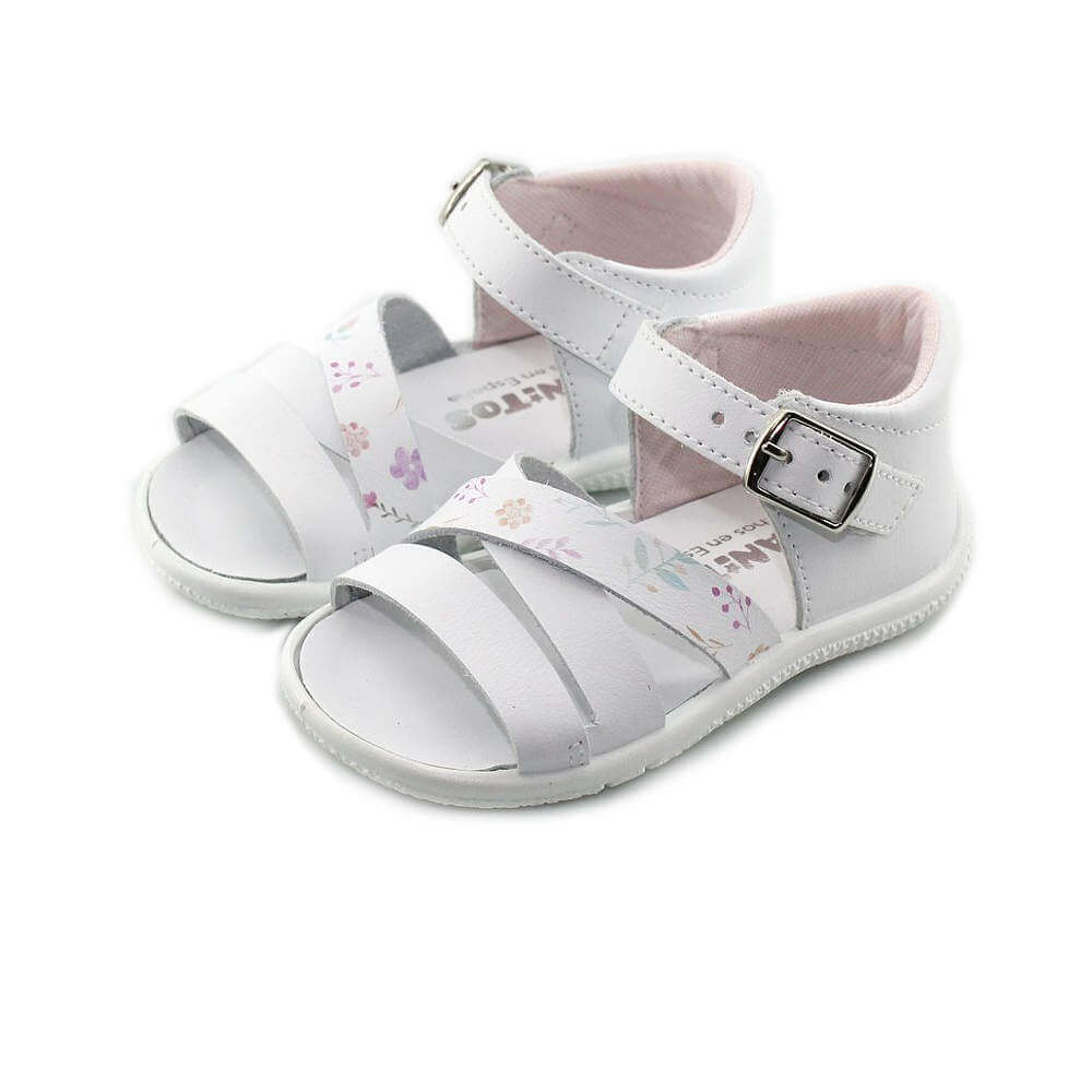 Tiras cruzadas con detalle estampado: Incorpora tiras cruzadas que sujetan el pie con suavidad, destacando una de ellas con un bonito estampado floral en varios colores que aporta un toque alegre y original.