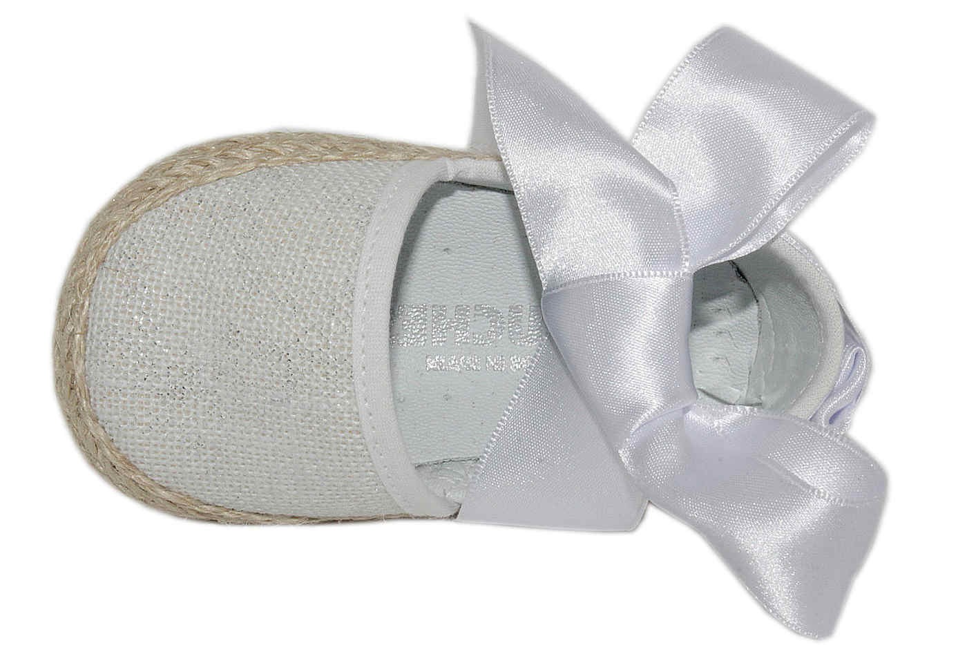 Zapatito bebé, Marca CHUCHES. Fabricada en tejido de lino, con lacito de raso al tono. Ideal para llevar a tu bebé como una muñeca.