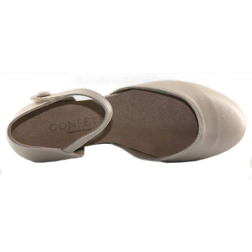 Zapato asandaliado marca Confetti. Fabricado en napa nacarada de primera calidad. Forro en piel y piso en goma antideslizante y de vestir. Cierre con velcro para ajustar y decorado con un botón. 100% fabricado en España.