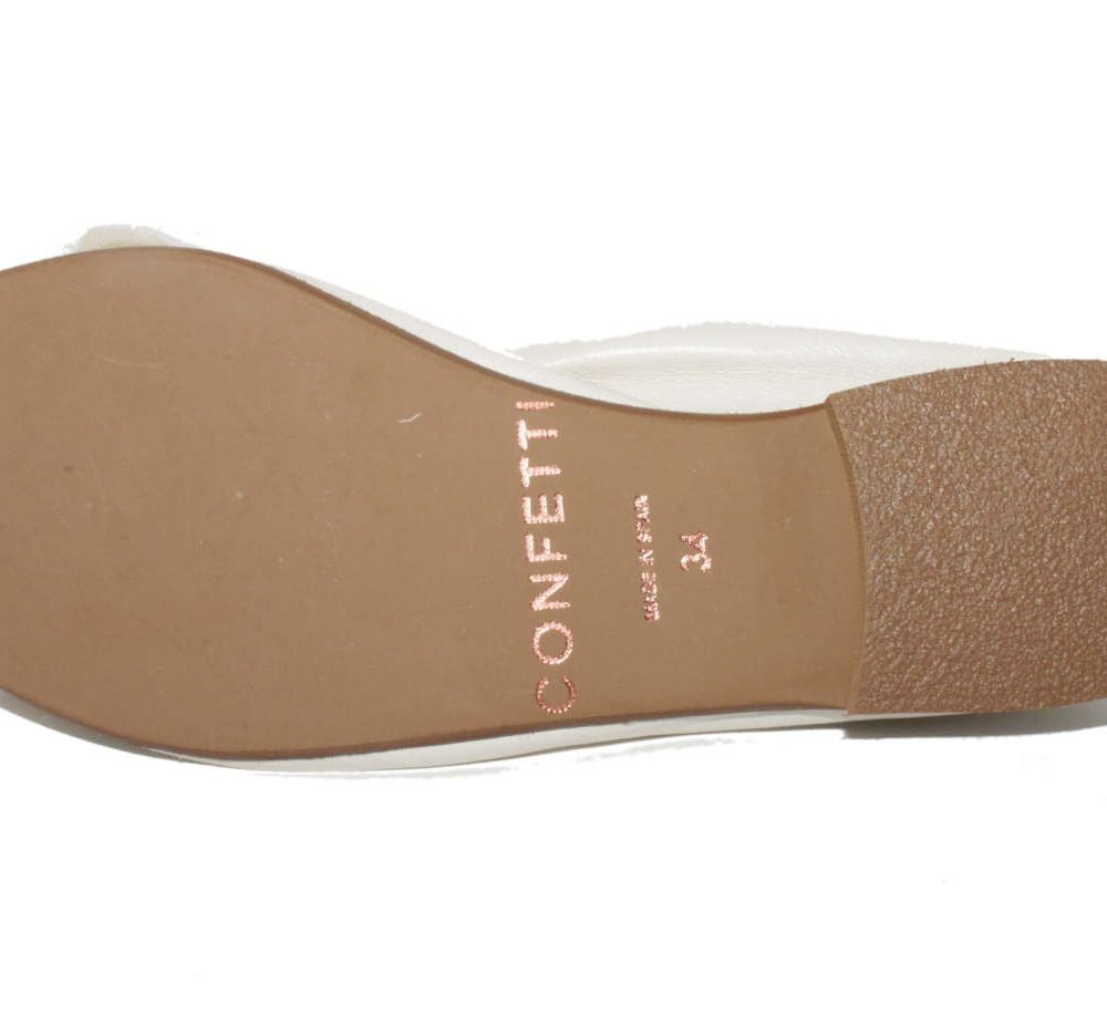 Zapato estilo bailarina, fabricada en napa nacarada de primera calidad. Piso de vestir en goma antideslizante y plantilla acolchada que le aporta comodidad. Ribeteado elástico para que se ajuste perfectamente al pie y no se salgan. Detalle de flor en la pala, en lino, seda y raso, que le da un aire muy ceremonioso y estilo a la vez.
