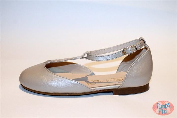 Zapato niña, estilo pepito, marca Eli. Fabricado en napa perlada de primera calidad. Piso de vestir en goma antideslizante. Correa central en piel escamada dorada. Ideales para cermonias. 100% fabricado en España.