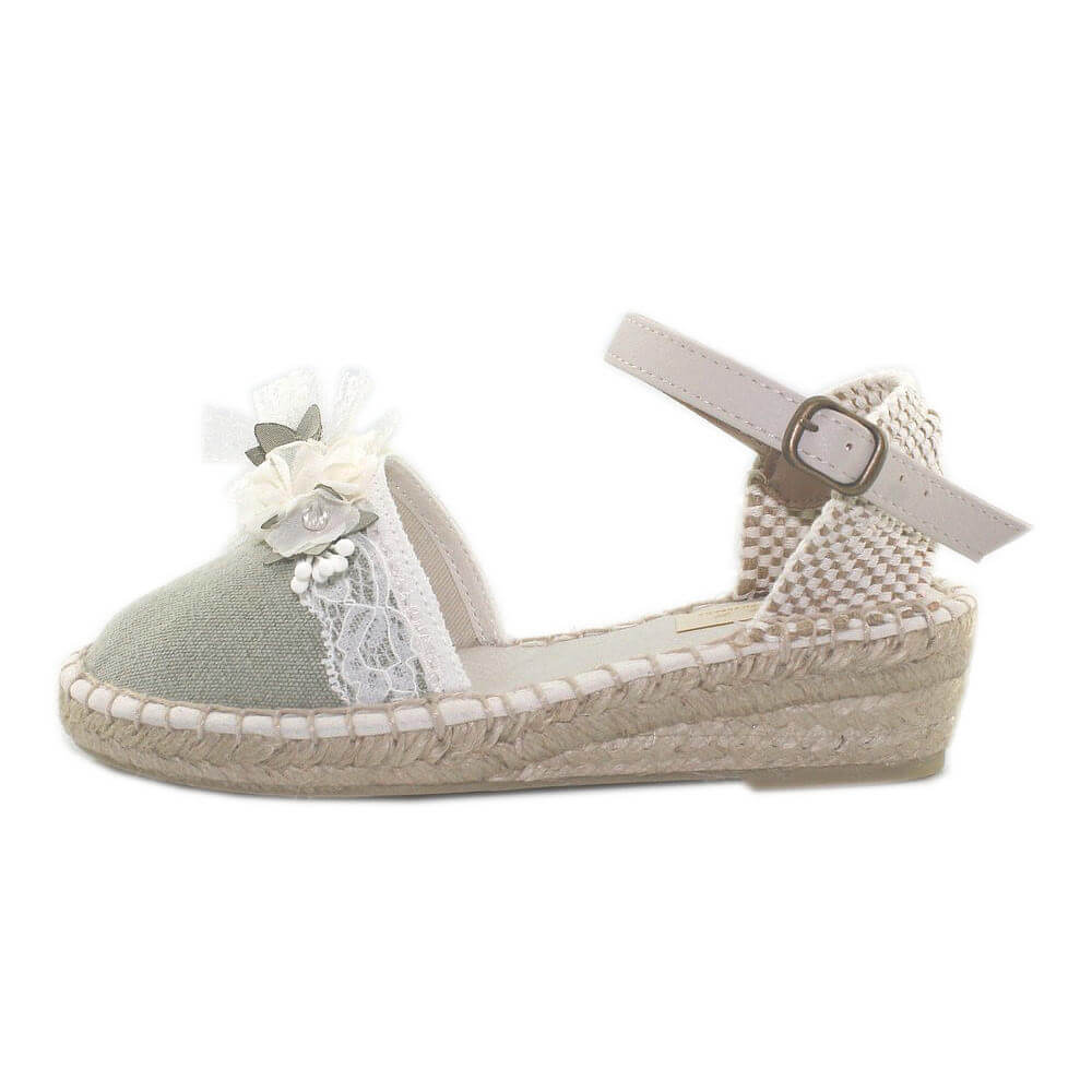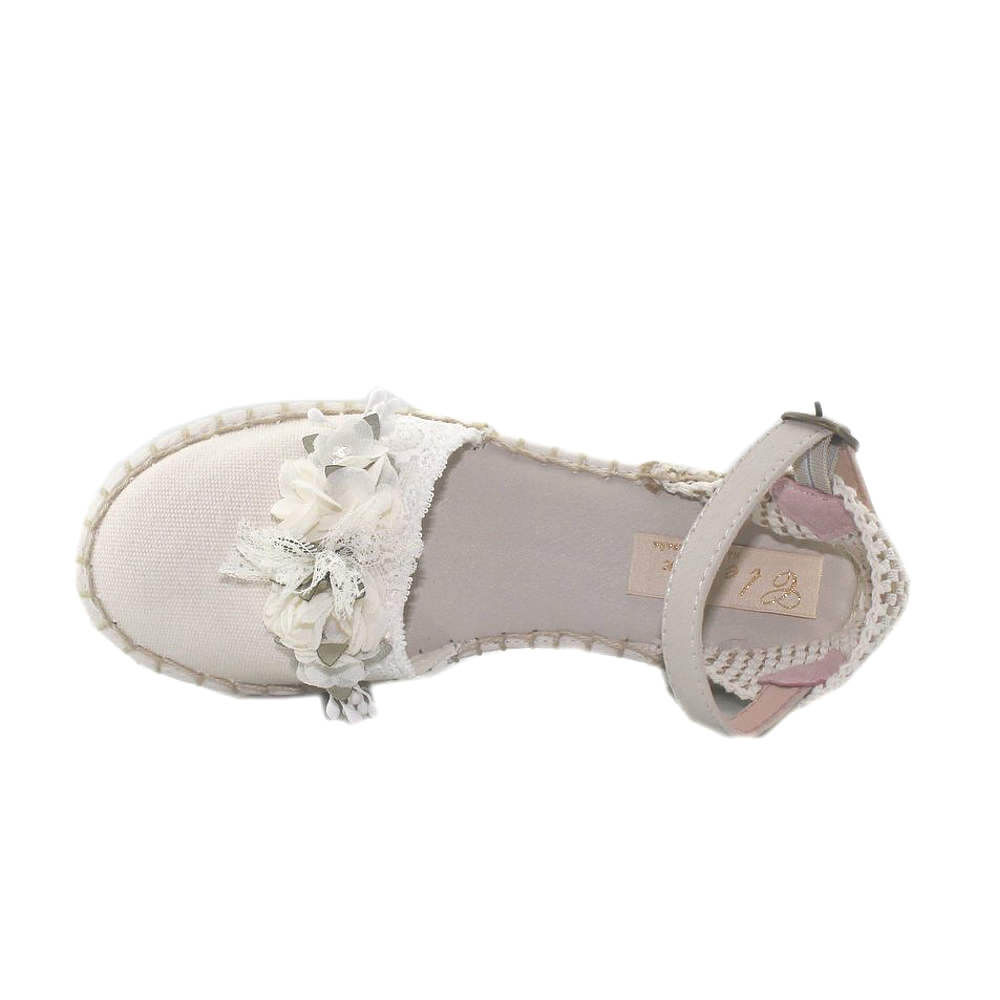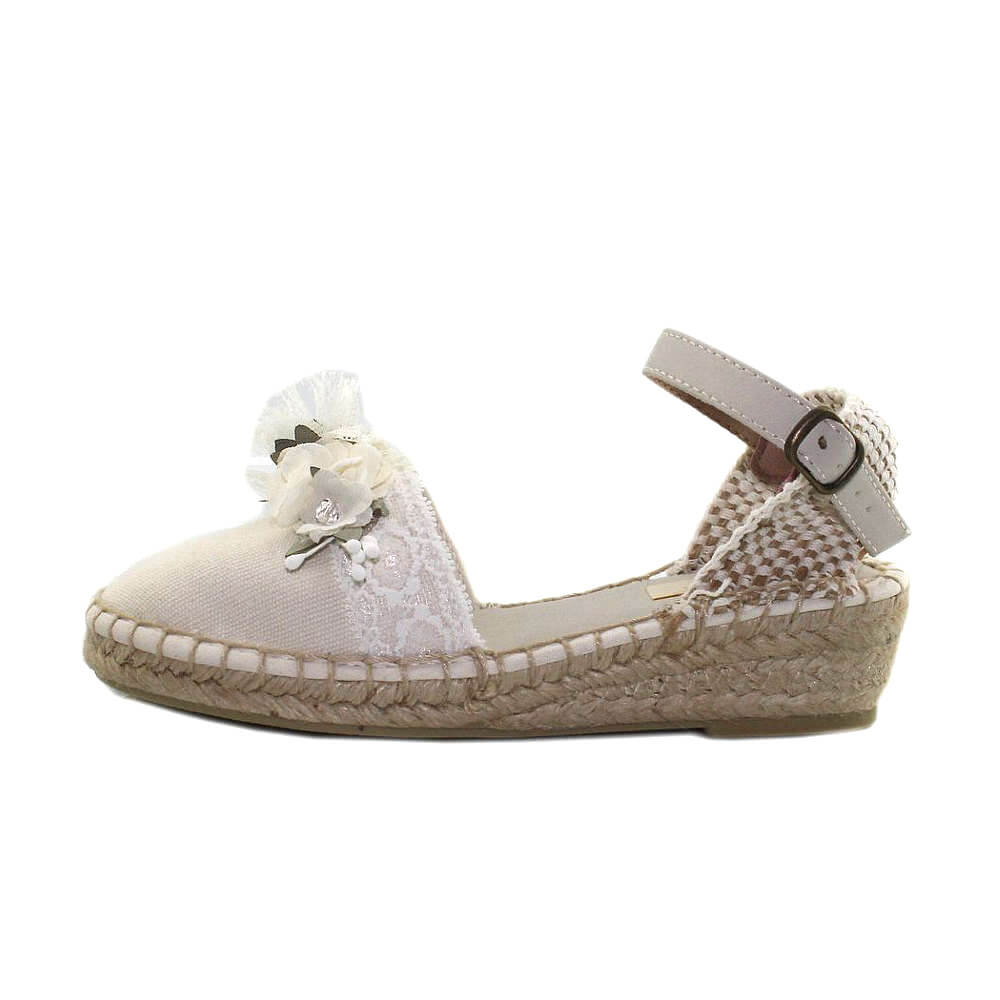 Eleva cada celebración con nuestra alpargata decorada con finos detalles florales, creada para aportar distinción y delicadeza en ocasiones especiales. Este modelo exclusivo fusiona materiales selectos y una elaboración minuciosa, pensado para lucir en comuniones, eventos familiares y ceremonias elegantes.