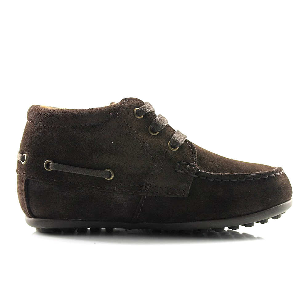 Botín unisex marca Confetti. Fabricado en ante hidrofugado de primera calidad. Forro en borreguillo, ideal para los fríos días del Invierno. Piso en taco, muy cómodo y flexible, altamente resistente a la fricción. Detalle de cordón, estilo «náutico» alrededor del zapato.100% fabricados en España.