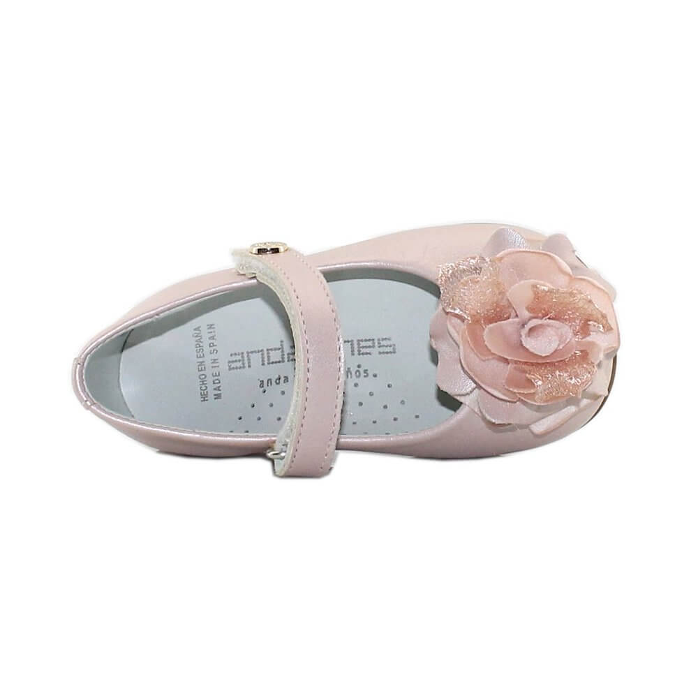 Merceditas para niña de la prestigiosa marca Andanines, especialista en calzado infantil. Fabricadas con piel nacarada de primera calidad, forro en piel y plantilla en piel, para una mayor comodidad. El piso de vestir es de goma antideslizante y flexible para que la pequeña se sienta segura mientras camina. El cierre ajustable con velcro y detalle metálico dorado con la inicial de la firma, son detalles que le aportan un toque de elegancia a la vez que se ajustan perfectamente al pie de la niña. Por último, el especial detalle en la pala de una flor combinada en piel y tul al tono del resto del zapato le da el toque especial que le hará destacar entre los demás. Un modelo pensado para combinar con los looks más elegantes y estilos. Apuesta por la calidad, el diseño y la seguridad que Andanines ofrece para los más pequeños.