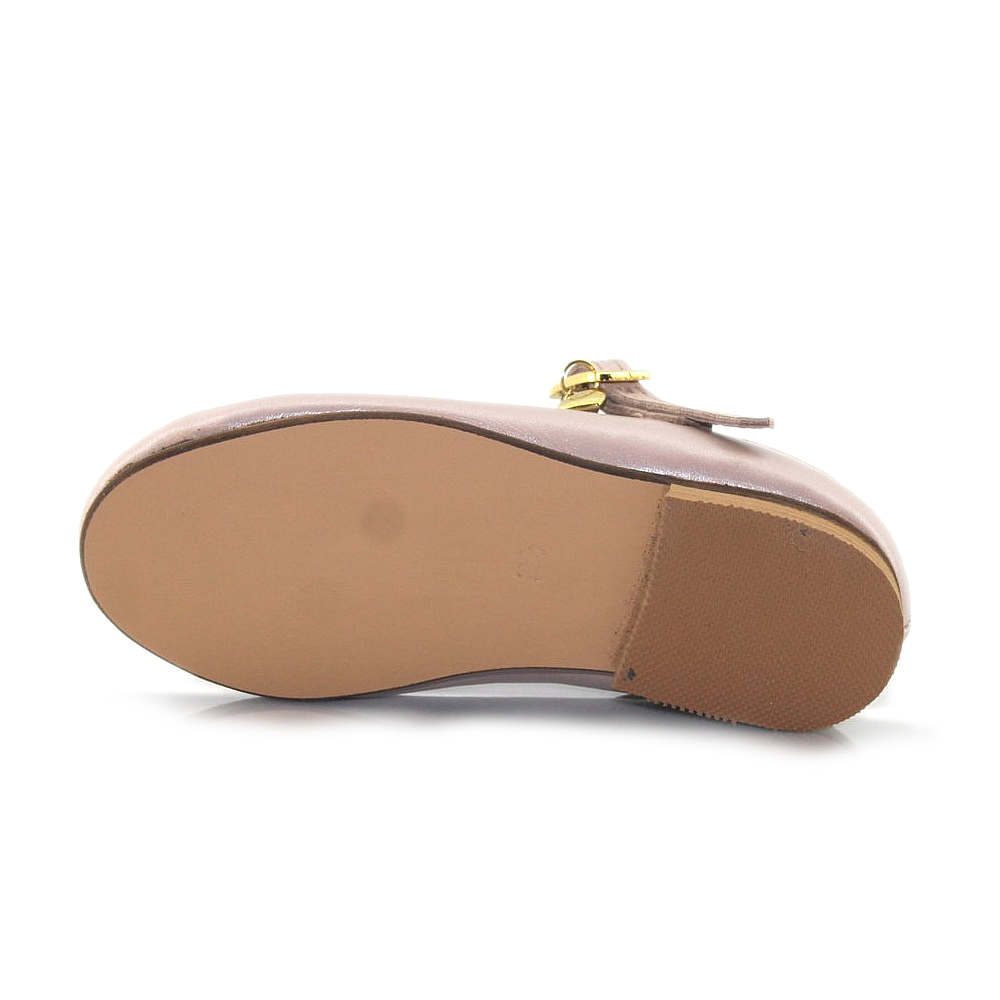Preciosa merceditas para niñas en piel metalizada y orginal detalle en la hebilla.