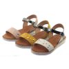 Zapatila niña marca GORILA. Fabricada en tejido y piel. Piso en yute y goma. Plantilla en piel y almohadillada. Detalle de tejido en saco color camel y dorado.