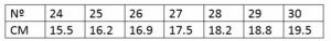 Te aconsejamos que midas por dentro (con un metro metálico) , unos zapatitos de tu peque actuales y compares las medidas con la siguiente tabla.