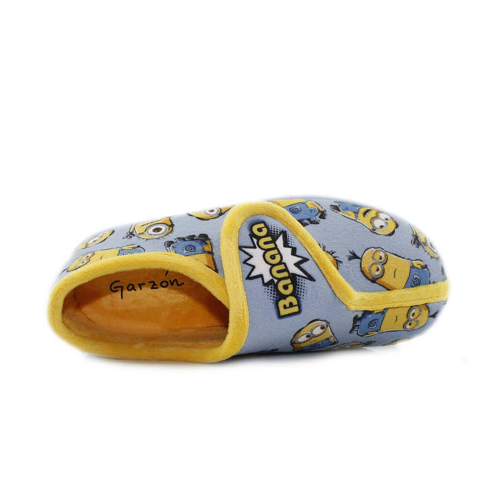 Las zapatillas de casa Garzón para niños combinan diversión y confort a partes iguales. Con un diseño cerrado y una divertida estampación de los Minions en tonos grises y amarillos, son perfectas para los pequeños fans de estos simpáticos personajes.