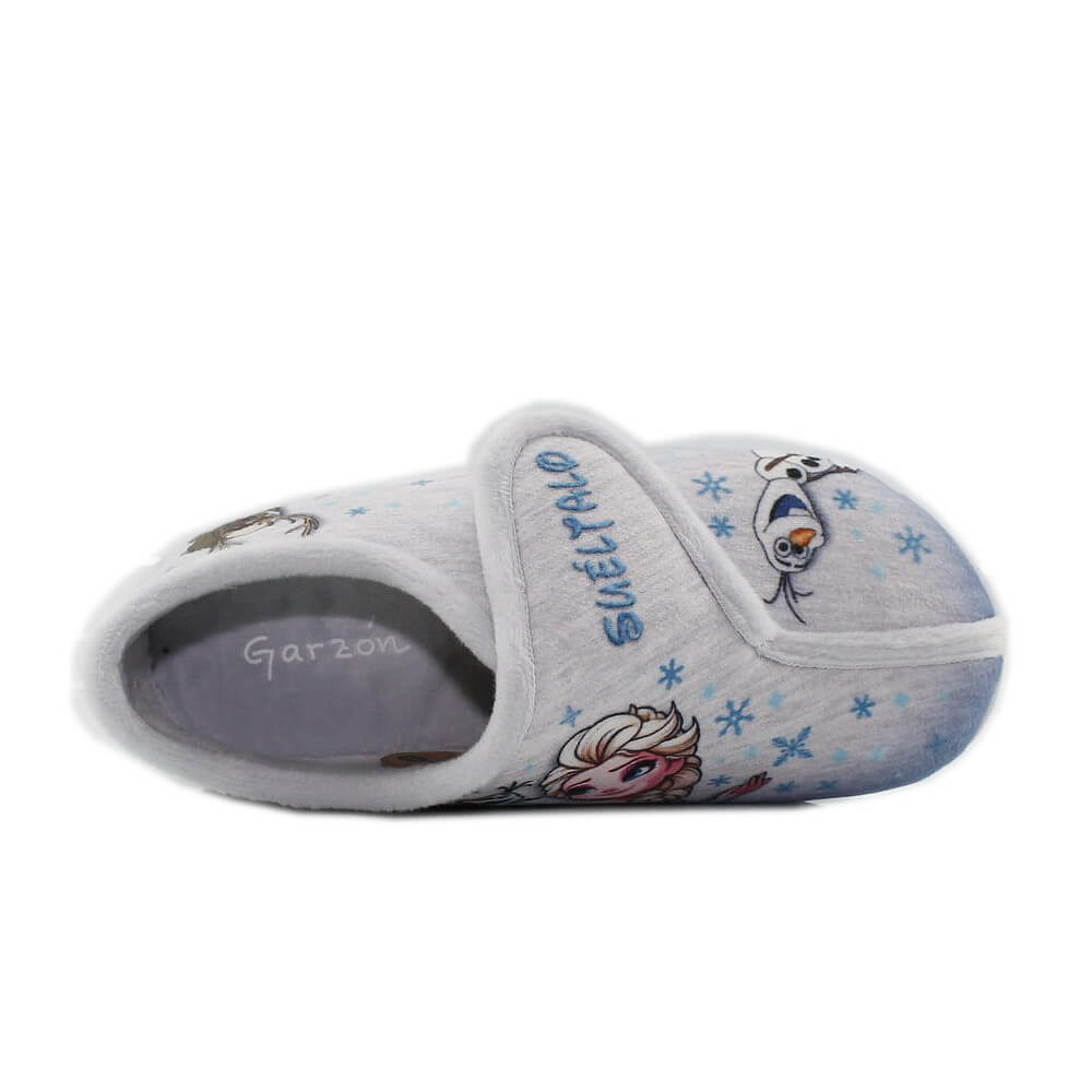 Las zapatillas de casa Garzón para niña combinan magia y confort a partes iguales. Con un diseño cerrado y una encantadora estampación de Elsa en tonos grises y azul hielo, son perfectas para las pequeñas fans del mundo de Frozen.